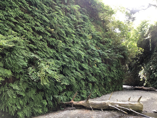 The only way to stay longer in this park would have been to reserve 24 hours ahead, so the following morning we continued southward and looked for an RV park where we could be comfortable for the time until we could continue on home. We did find one park in Brookings, Riverside RV Park that looked good on a drive by and in reviews written, but was closed due to COVID-19. Once in California we drove through a park near Crescent City, but decided to continue on to Patrick’s Point. At about 2 we got the update that our evacuation had been downgraded to only a warning.
